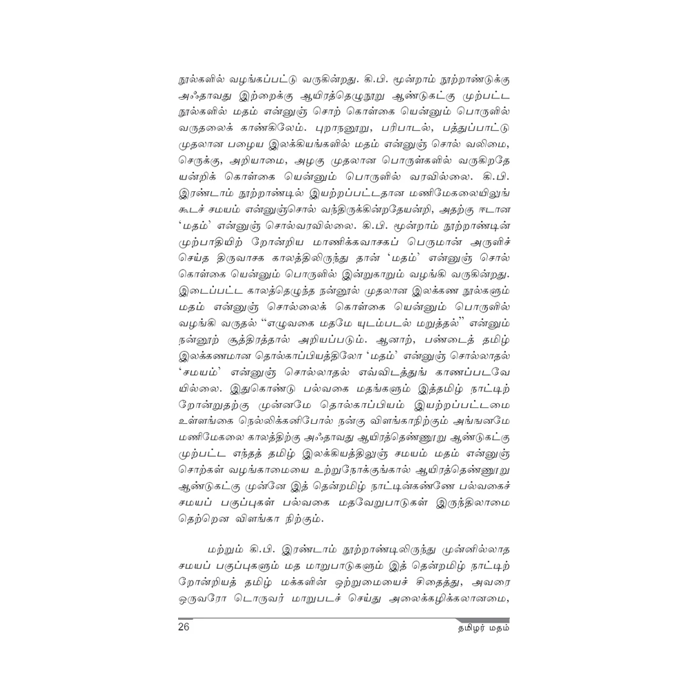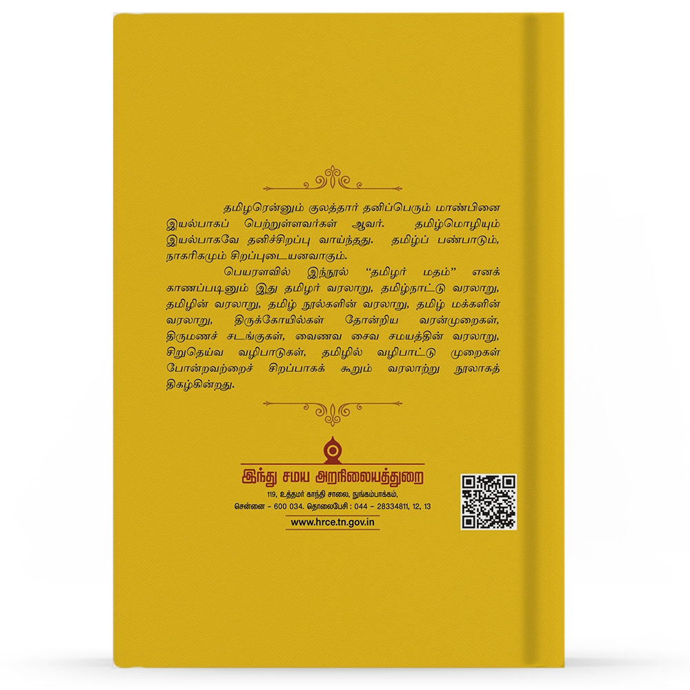 பெயரளவில் இந்நூல் “தமிழர் மதம்“ எனக் காணப்படினும் இது தமிழர் வரலாறு, தமிழ்நாட்டு வரலாறு,  தமிழின் வரலாறு, தமிழ் நூல்களின் வரலாறு, தமிழ் மக்களின் வரலாறு, திருக்கோயில்கள் தோன்றிய வரன்முறைகள், திருமணச் சடங்குகள், வைணவ சைவ சமயத்தின் வரலாறு, சிறுதெய்வ வழிபாடுகள், தமிழில் வழிபாட்டு முறைகள் போன்றவற்றைச் சிறப்பாகக் கூறும் வரலாற்று நூலாகத் திகழ்கின்றது.