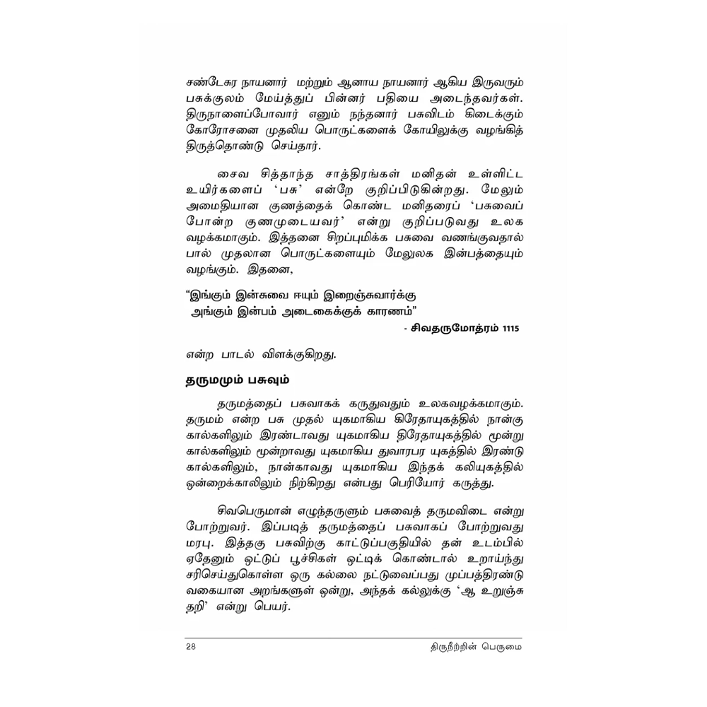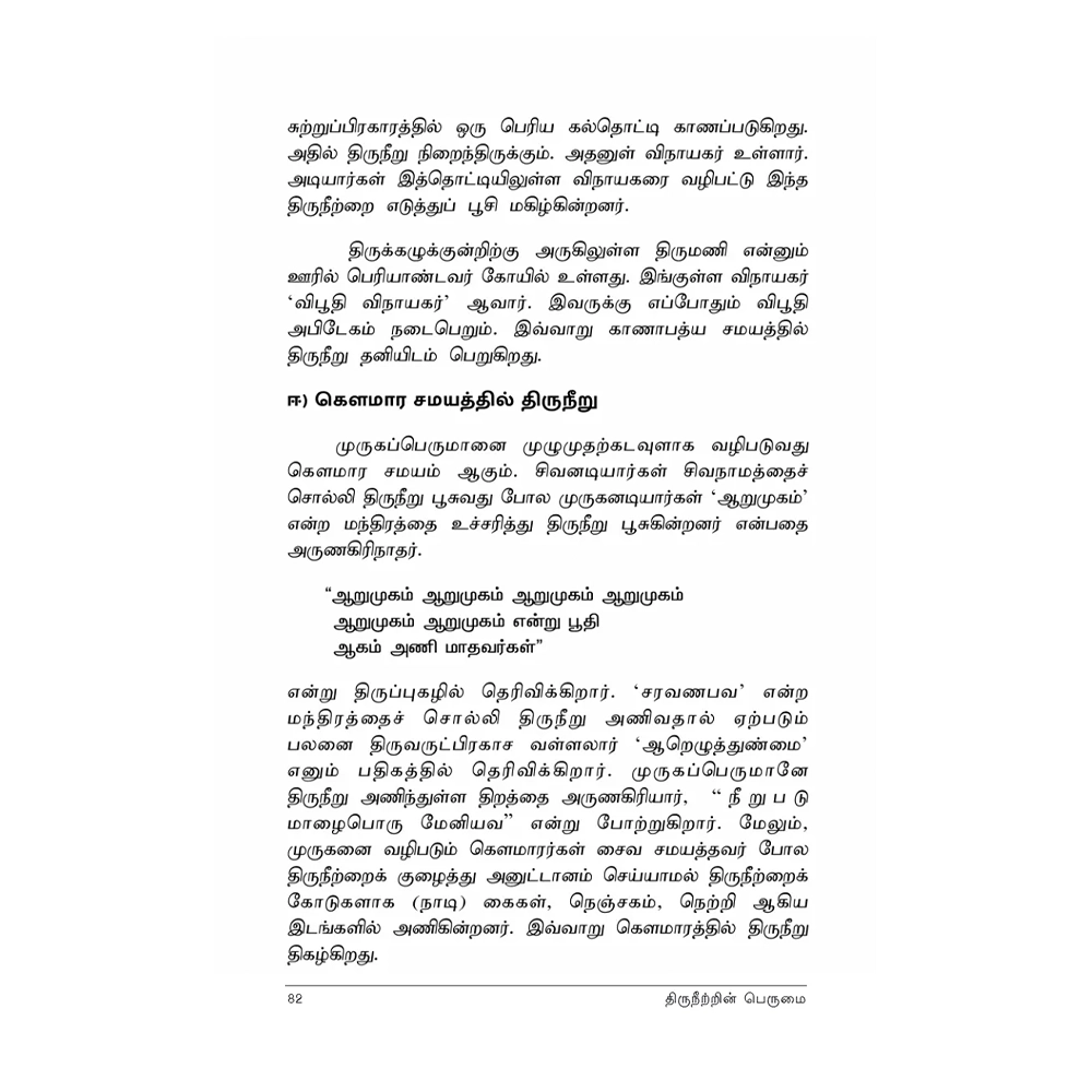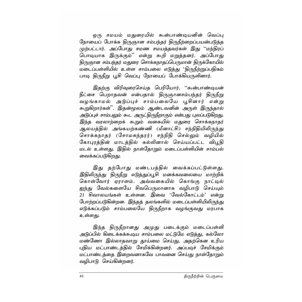 “நீறில்லா நெற்றி பாழ்” என்பது ஔவை வாக்கு. திருநீற்றின் பெருமை சொல்லவே உருவானது திருஞான சம்பந்தரின் ‘திருநீற்றுப் பதிகம்’. மந்திரச் சொற்களுக்கு நிகரானது திருநீறு. சைவ சமயத்தவரின் அடையாளமாக மட்டுமல்லாமல், தெய்விக ஆற்றல் தரும் புனிதச் சின்னமாகவே திருநீறு போற்றப்படுகிறது.
