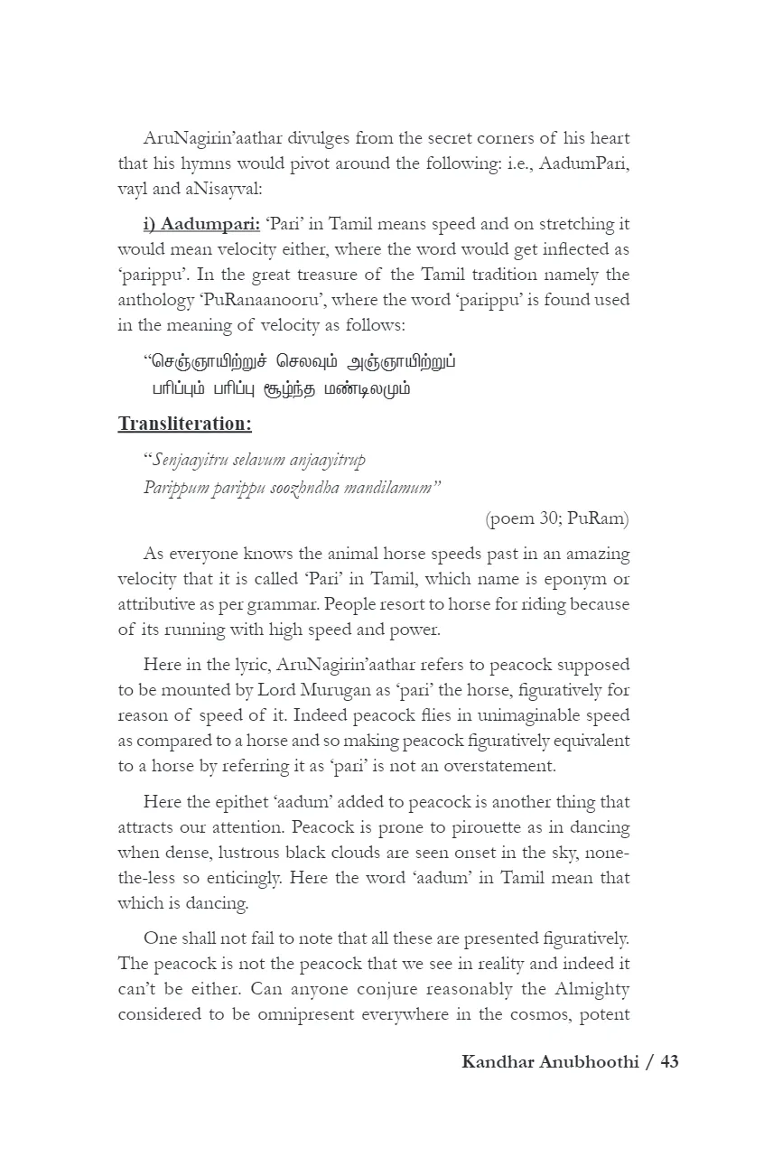 கந்தரனுபூதி உரையுடன் பாடல்களுக்கான பொழிப்புரை, சுருக்க உரை, குறிப்புரையும் கொடுக்கப்பட்டுள்ளது.